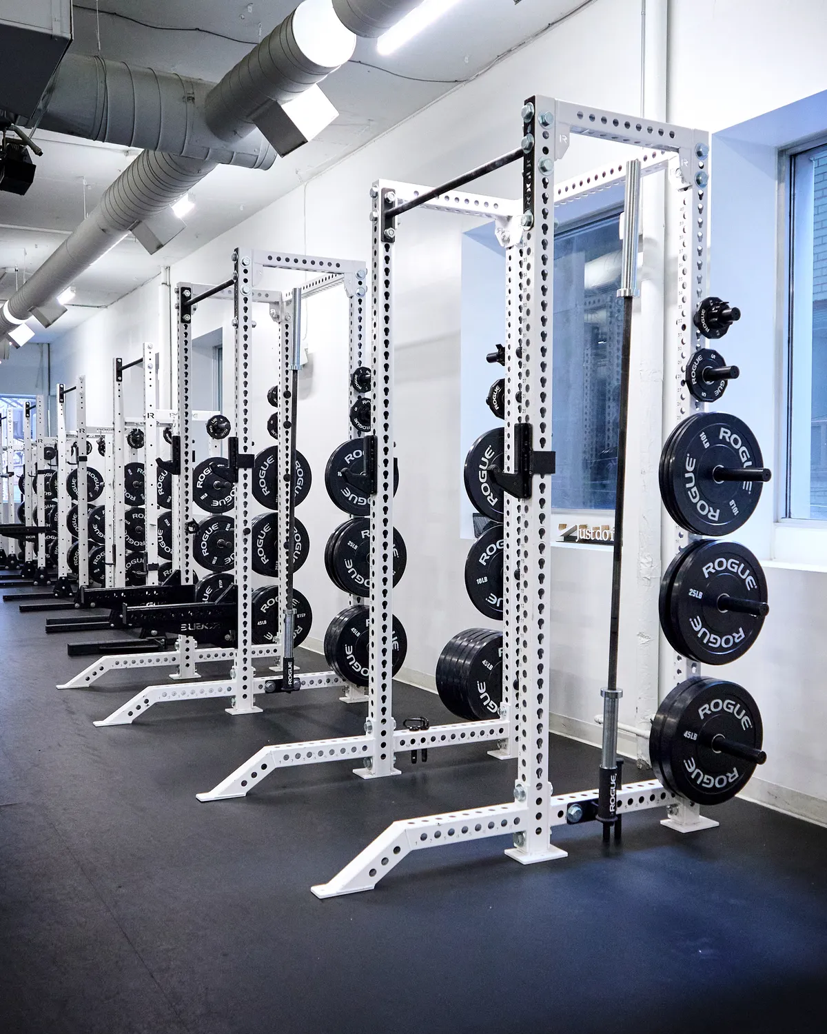The gym has nearly everything you could need: tons of squat racks, specialty bars, grips, and handles, lots of dumbbells and kettlebells, several benches, calisthenics and turf areas as well as a great lineup of Atlantis, Prime Fitness and Rogue machines. The gym has a small community feel and is indeed never crowded, the way they intended.